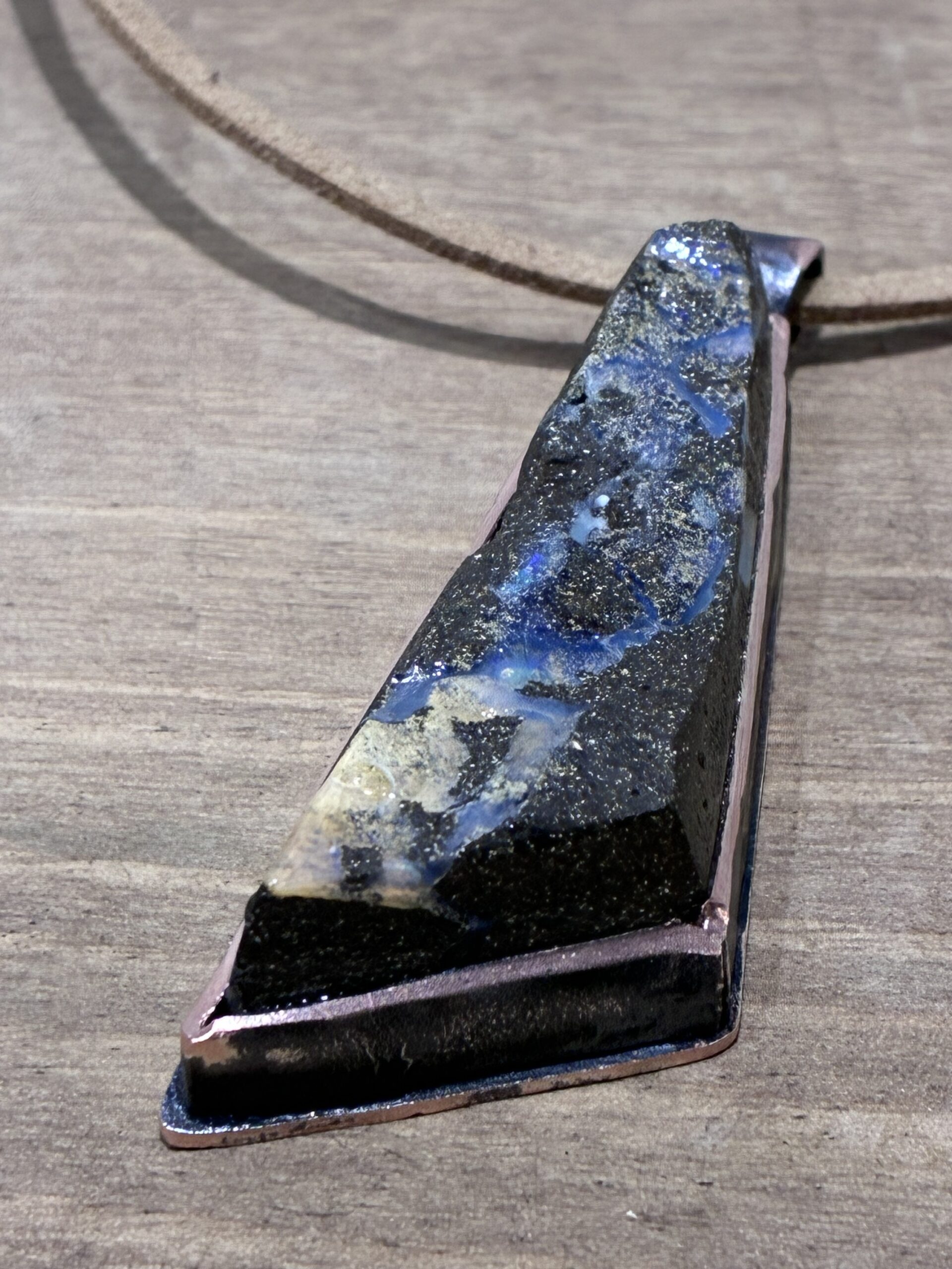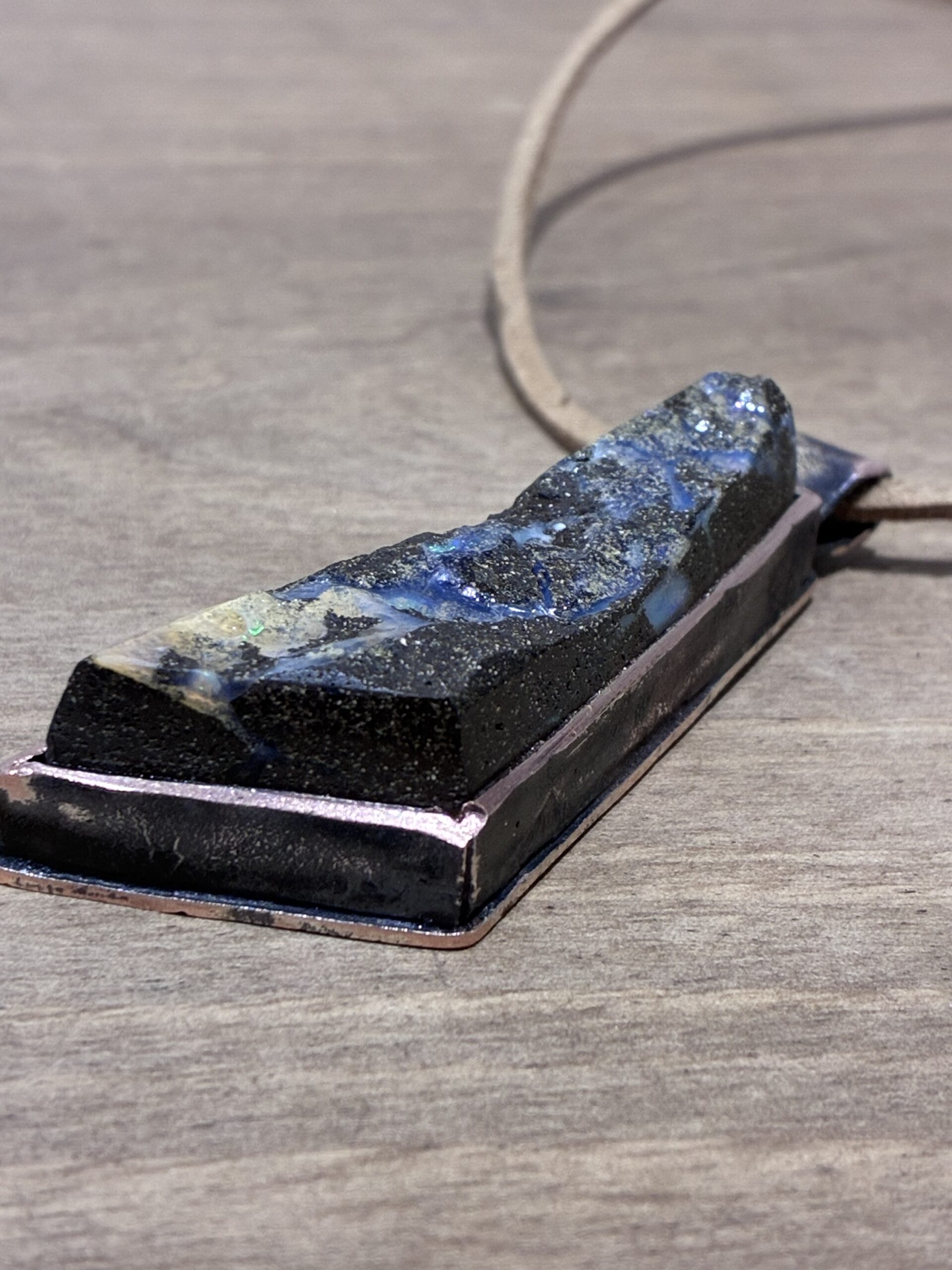 Il Boulder Opal ha già di per sé un fascino rustico e in questa matrice ho solo seguito il pattern della cristallizzazione, in questo caso la formazione dell Opale è dominante rispetto alle colorazioni, si scorgono comunque riflessi verdi, blu e un puntino rosso muovendo la pietra