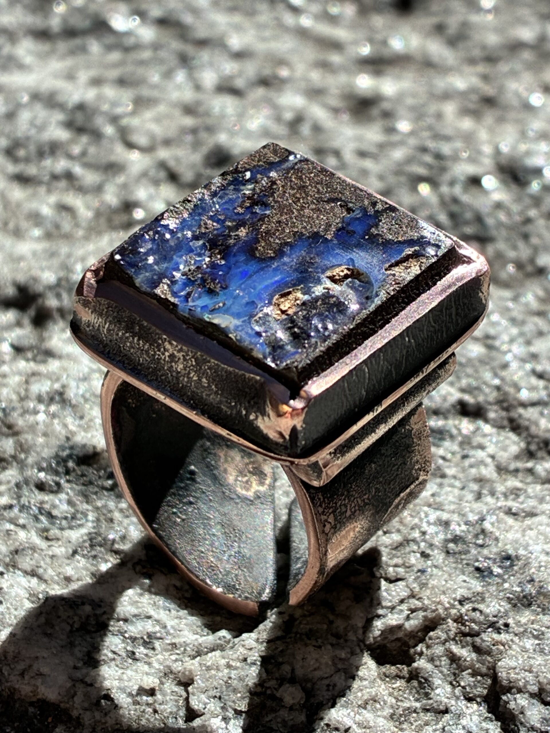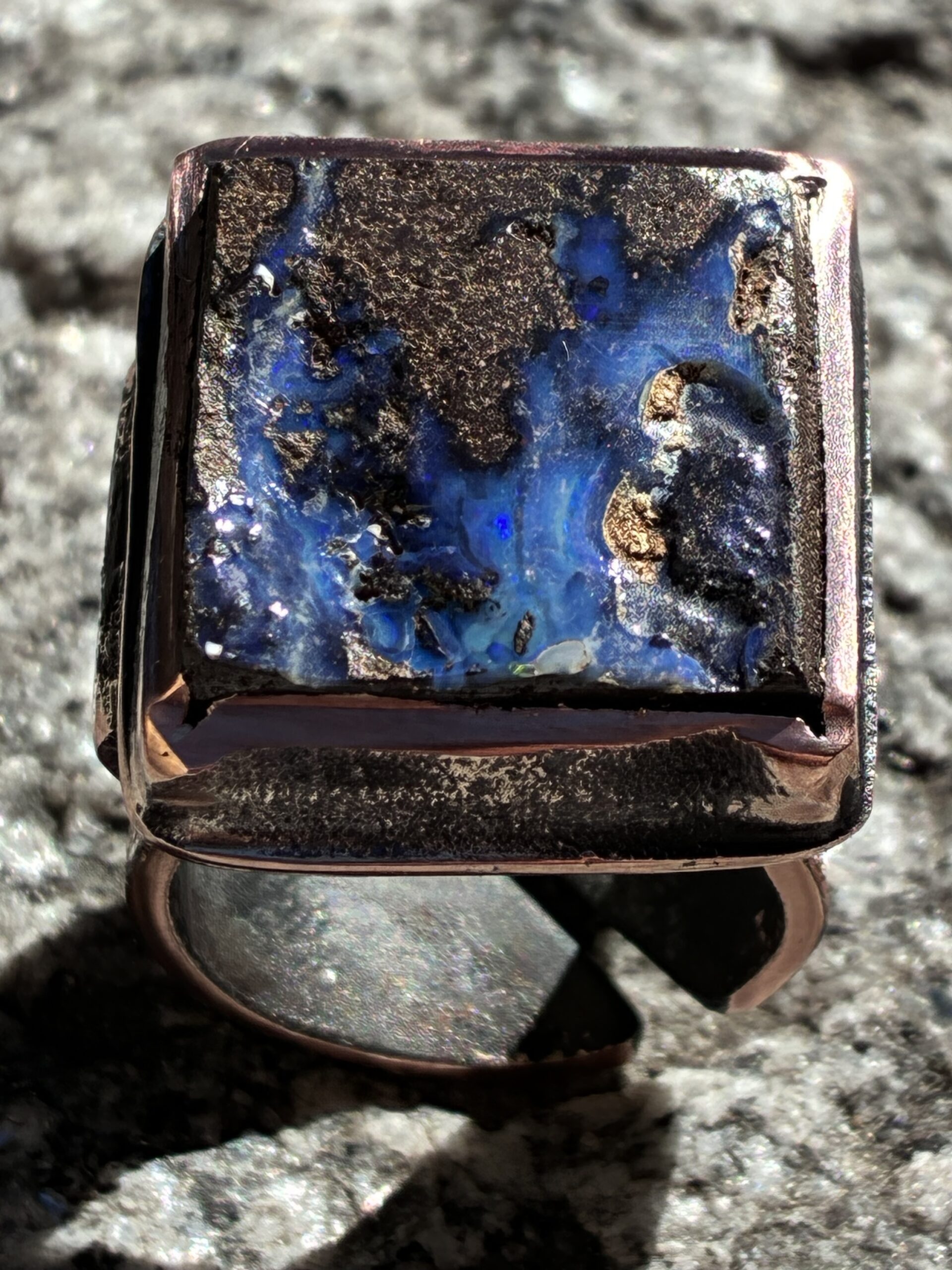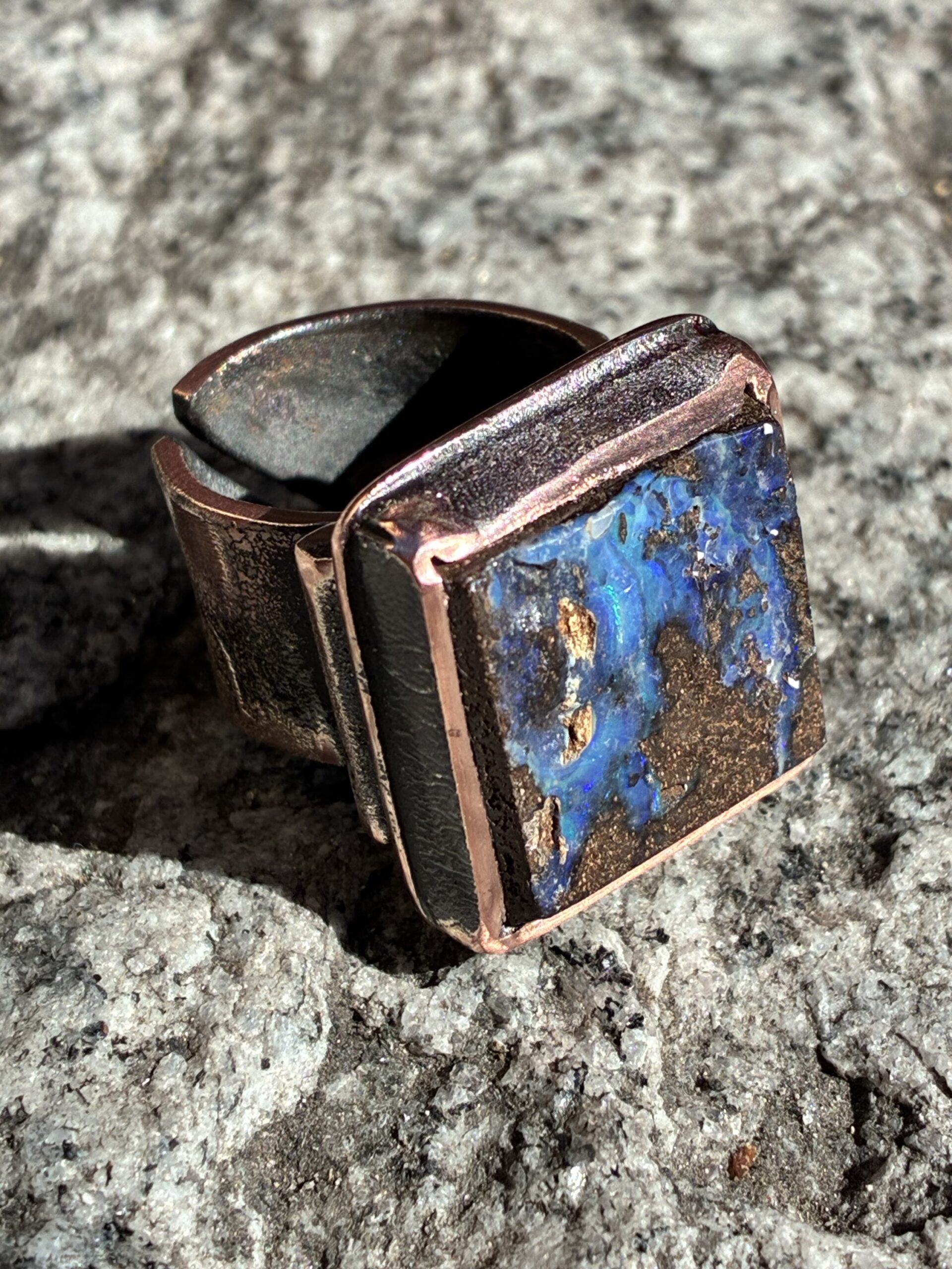 Questo anello nasce da un Boulder Opal australiano lavorato dal materiale grezzo direttamente qui in atelier.