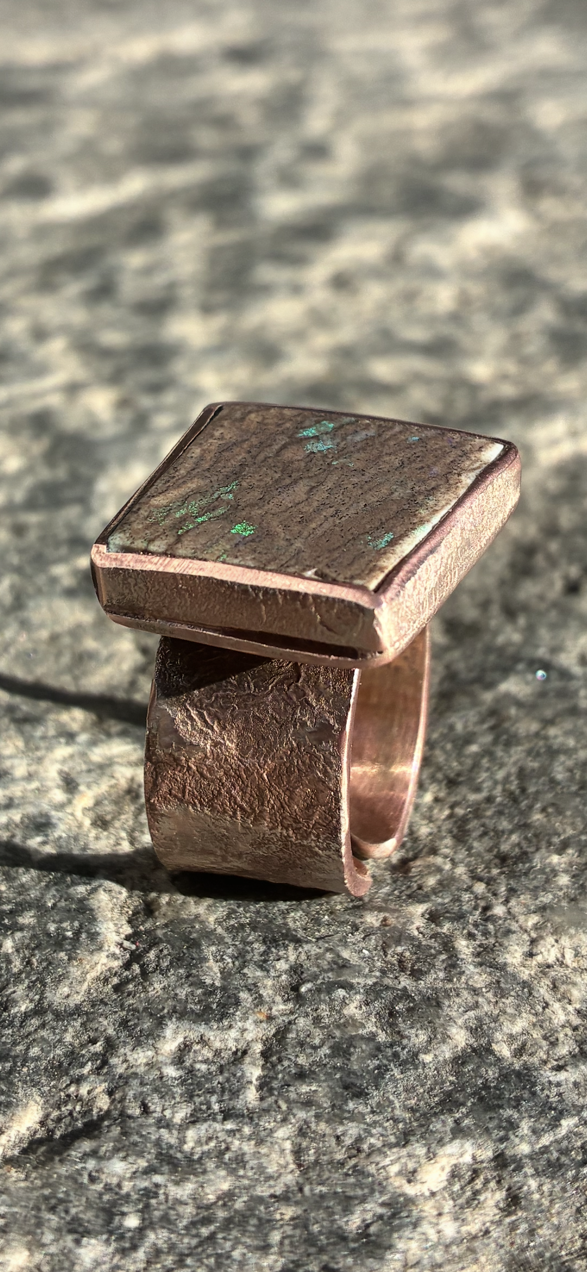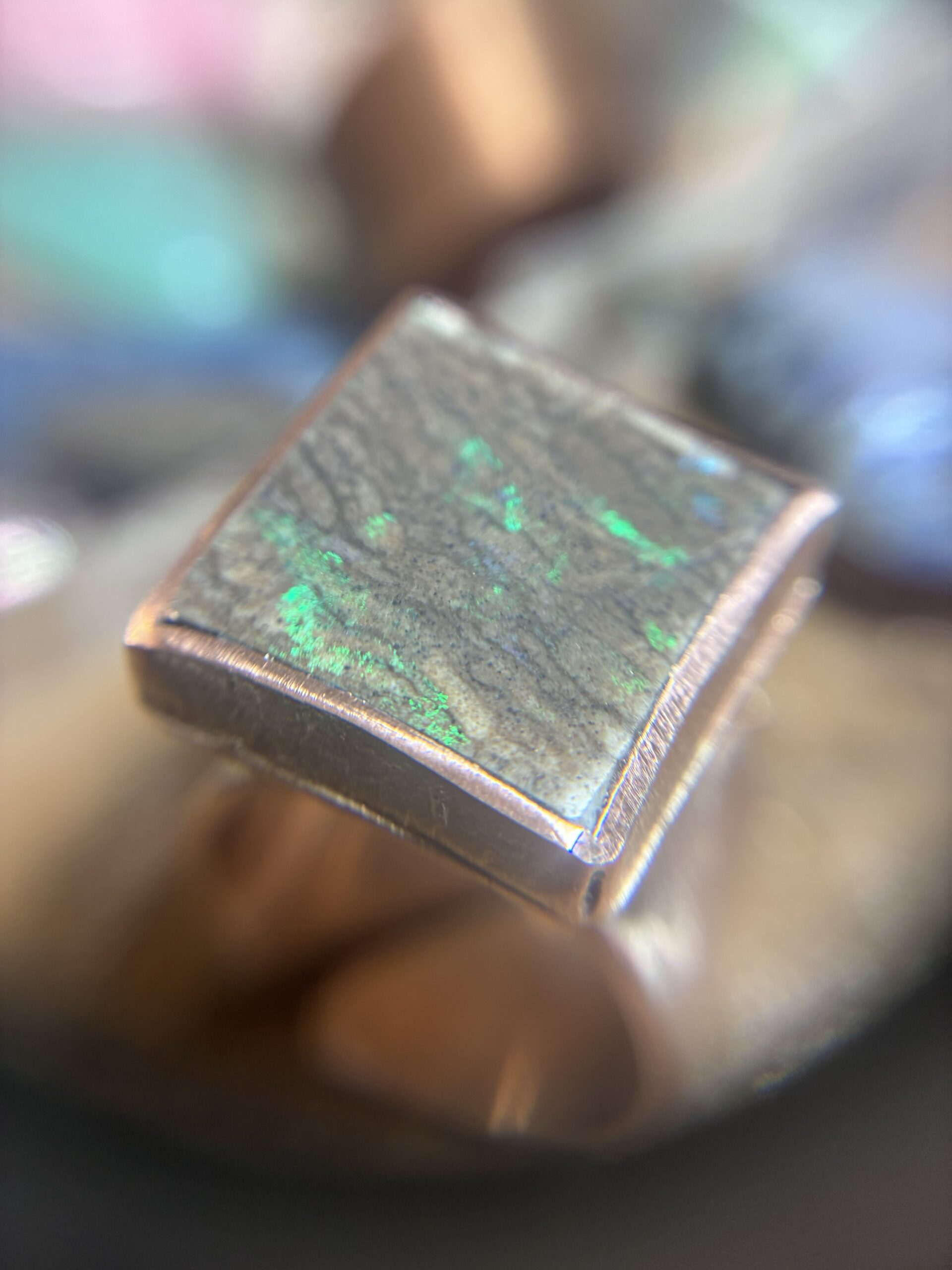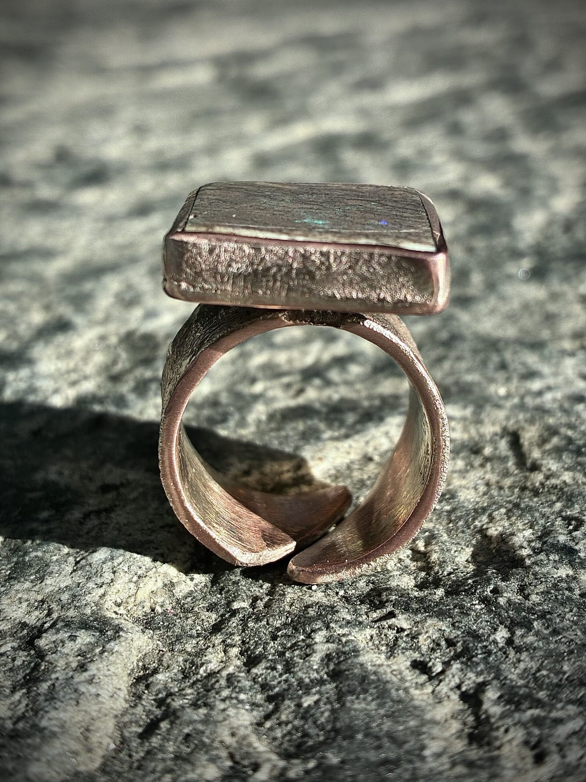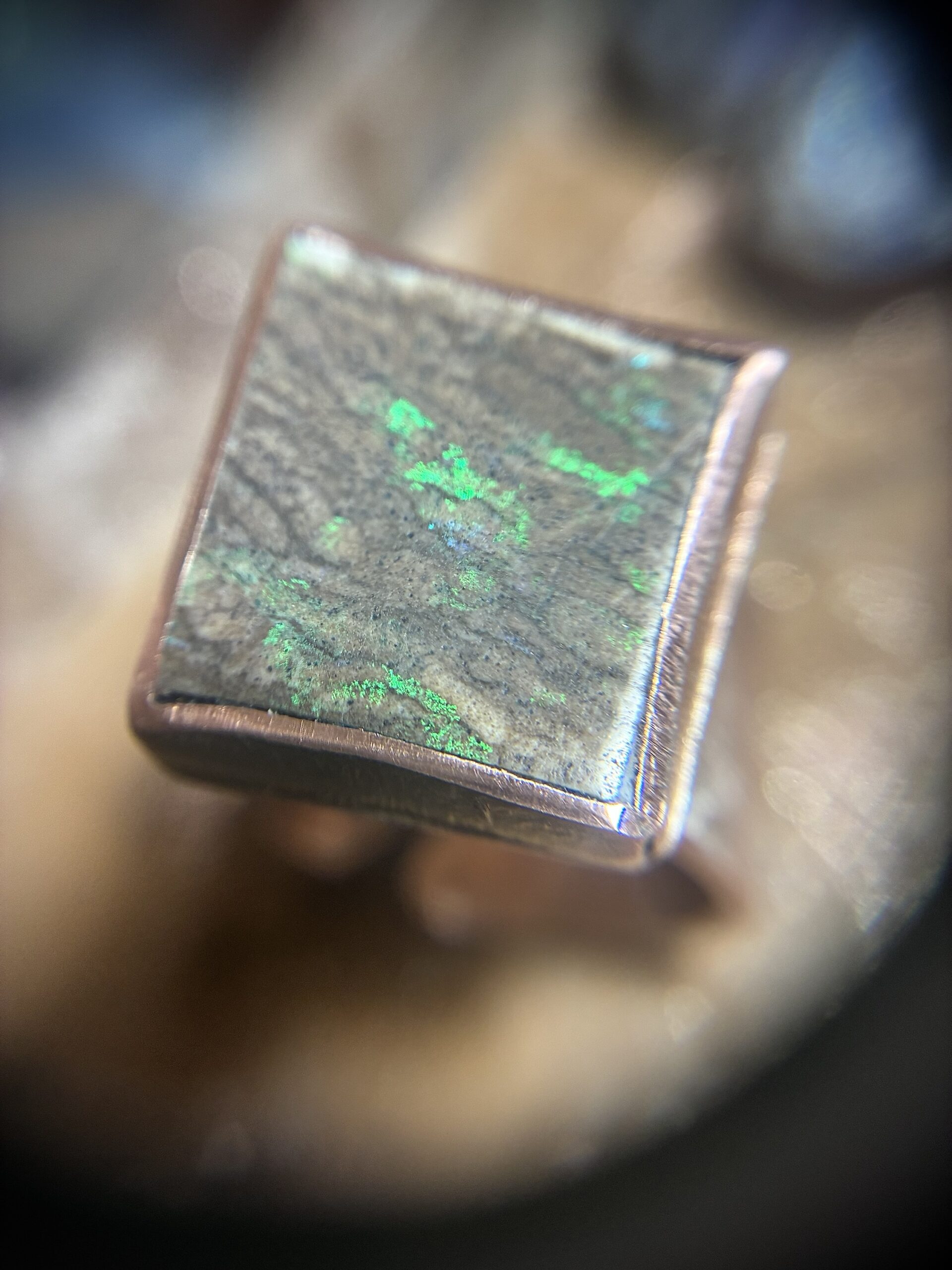 Questo anello nasce da un Boulder Opal lavorato dal materiale grezzo direttamente qui in atelier.