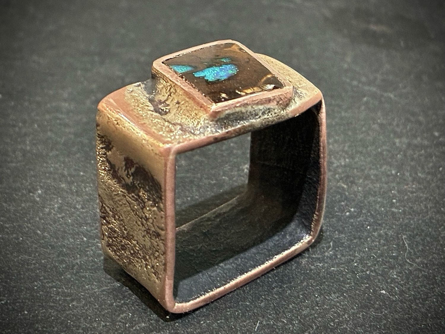 La pietra è un Boulder Opal lavorato qui in laboratorio dal materiale grezzo.