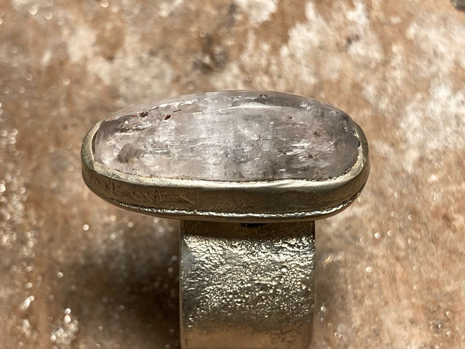 La Kunzite è una pietra davvero affascinante. La sua doppia durezza, che varia a seconda dell’orientamento, ne esalta i riflessi e le caratteristiche uniche, che cambiano ad ogni angolazione. Questa pietra in particolare presenta un bellissimo riflesso argenteo sulla superficie.