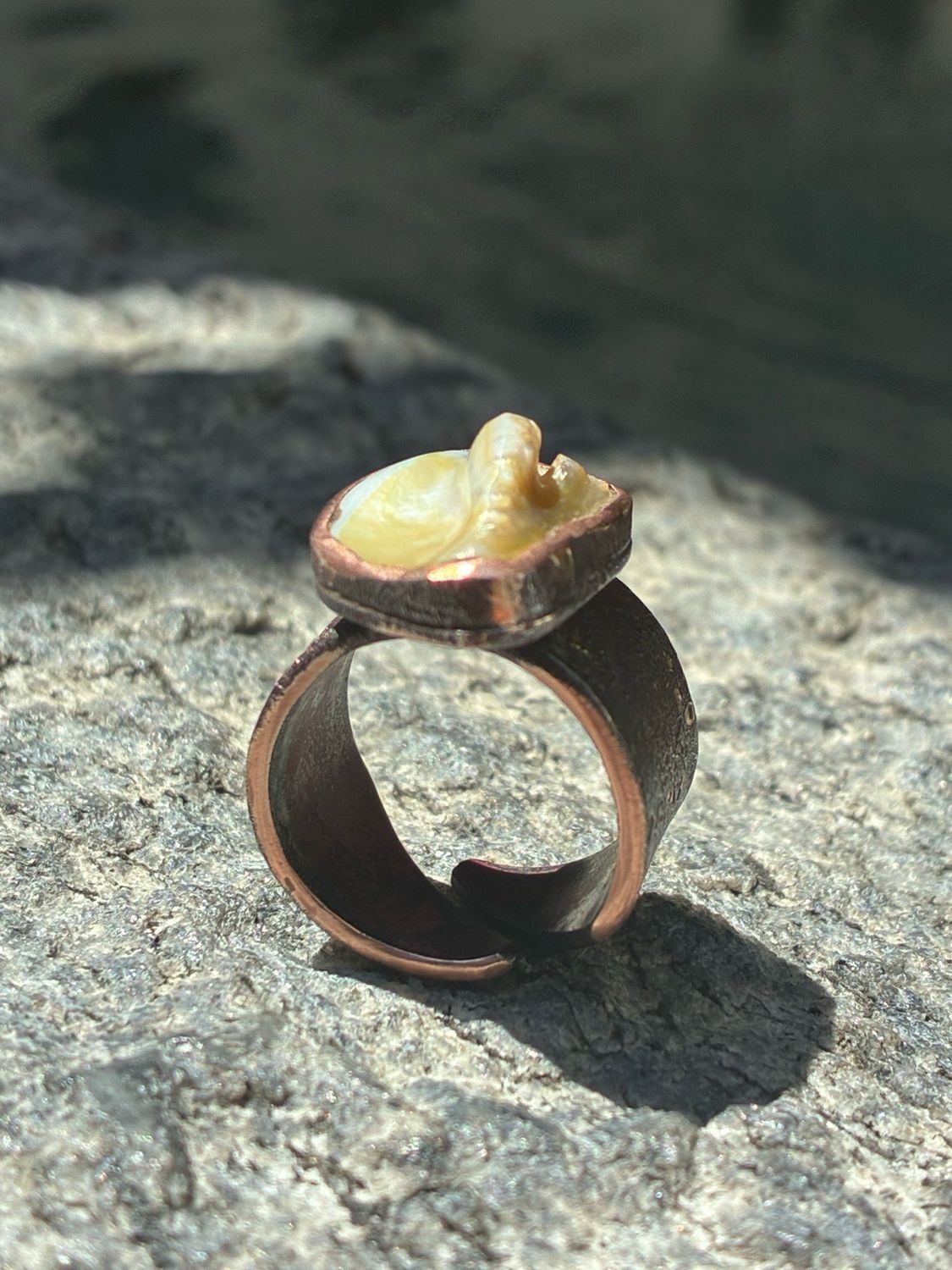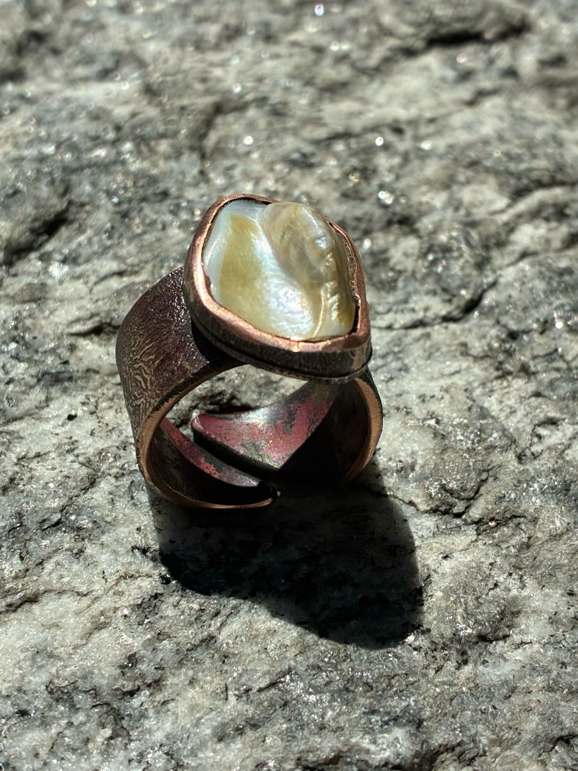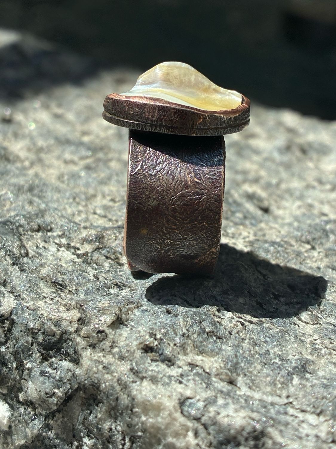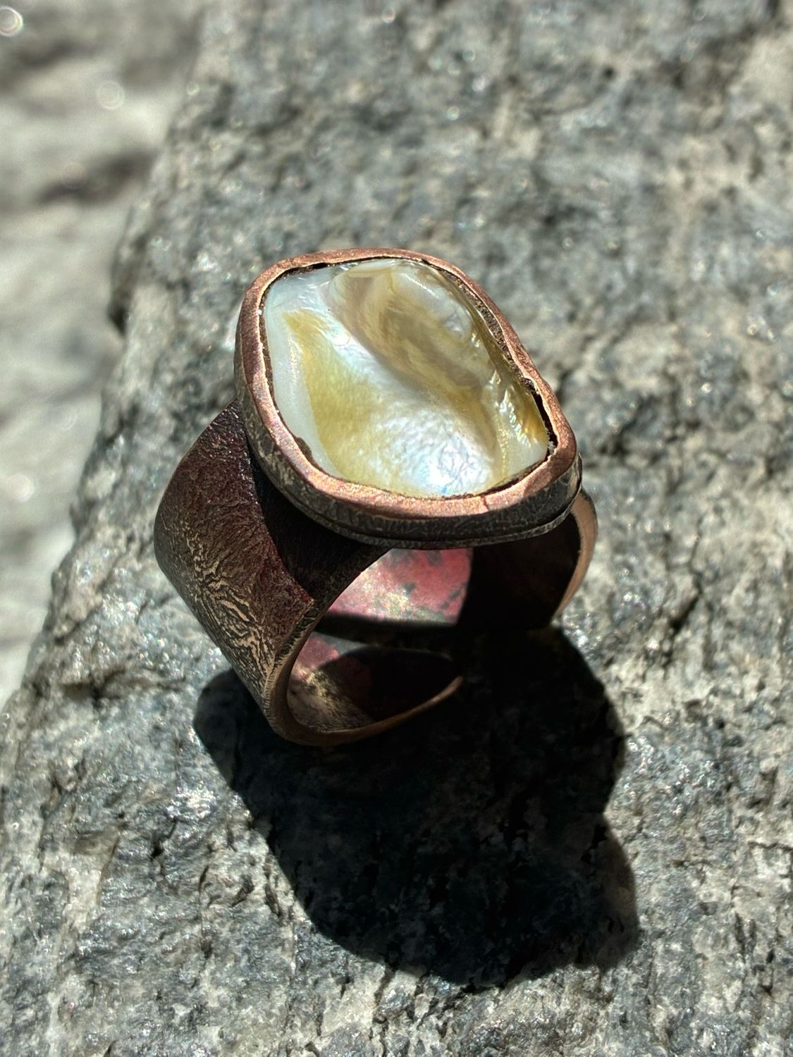 La Madreperla è una pietra organica luminosa, con riflessi che cambiano in base all’angolo e alla luce.